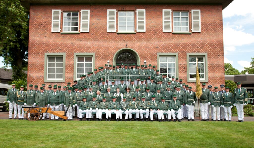 Offizierscorps der 1. Kompanie (v.l.n.r): Jürgen Adolf, Bernd Nierenkerken, Raimund Sträter, Norbert Knüwer, Tobias Große-Wietfeld, Uwe Schulte, Norbert Meierkord, Jens Neitemeier, Michael Schmalbrock, Sebastian Engelnkemper, Ingo Stump, Karl-Heinz Holthaus. Es fehlen: Markus Hölscher, Rolf Hoffmeister, Michael Beerhues, Ralf Paßgang, Thorsten Kleinelümern, Marc Eustrup (Stand 01.2025)